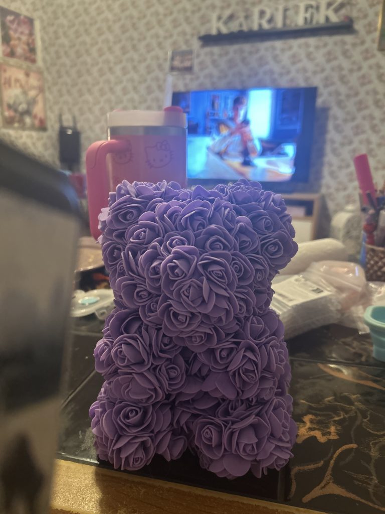 Finns röd,ljusblå, mörk blå och lila som på bild.