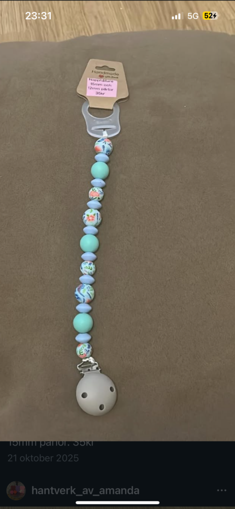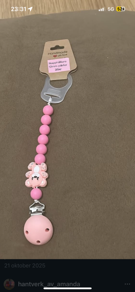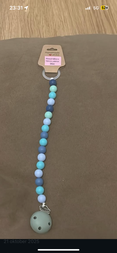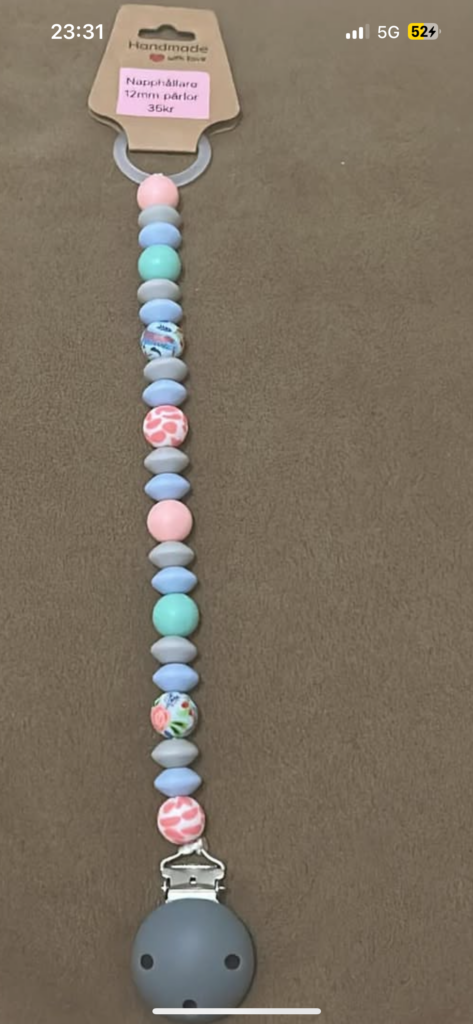 Napphållare Napphålllare som går att få med namn också om man vill ha det. finns 12mm och 15mm silikonpärlor. 35kr